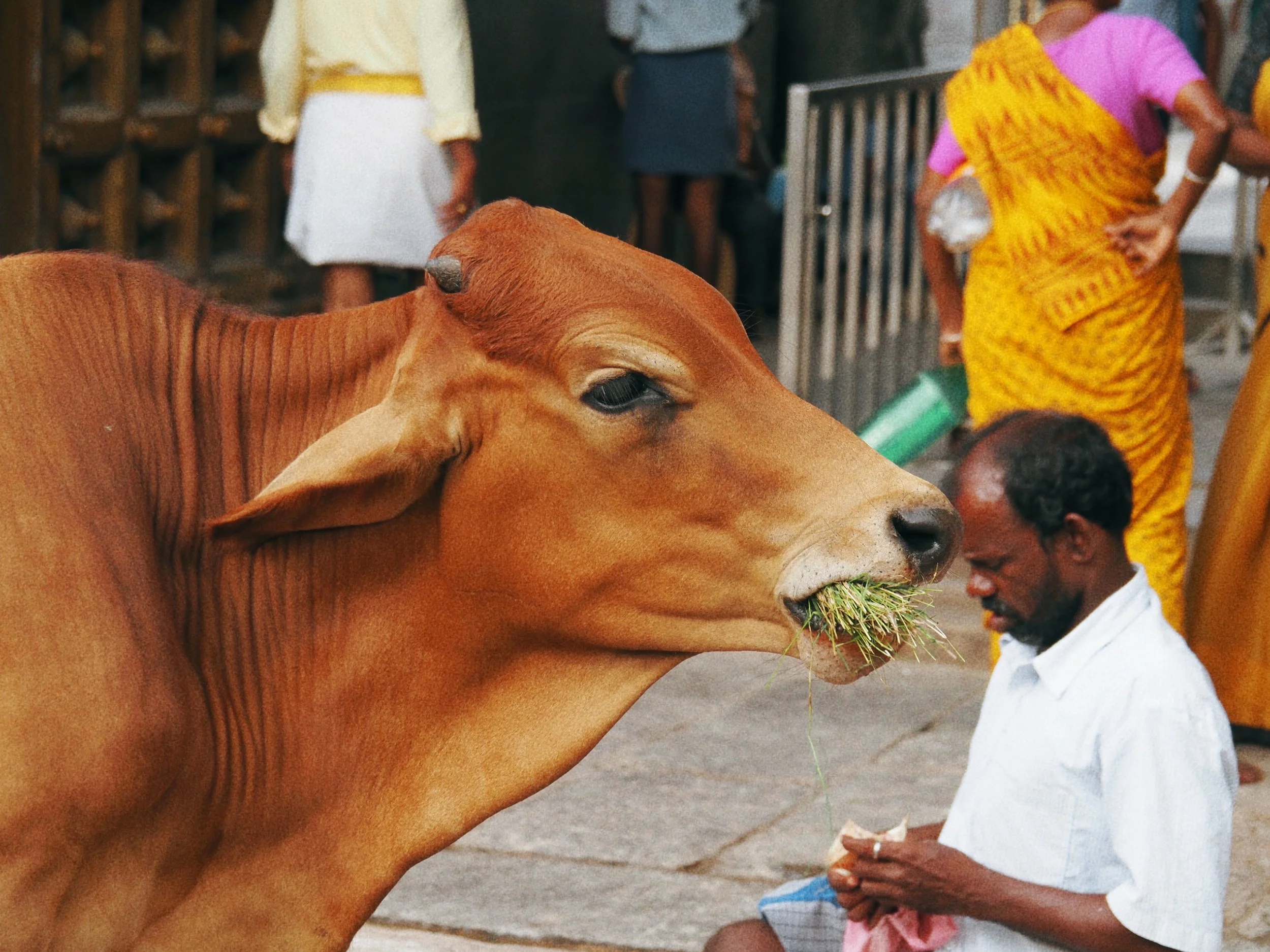 At Kapaleeshwarar Temple in Chennai, the cows are confident. Ravenous and fearless, they bump into you with their heads in attempts to be handed some sort of food. I pet them like dogs as they followed me around.