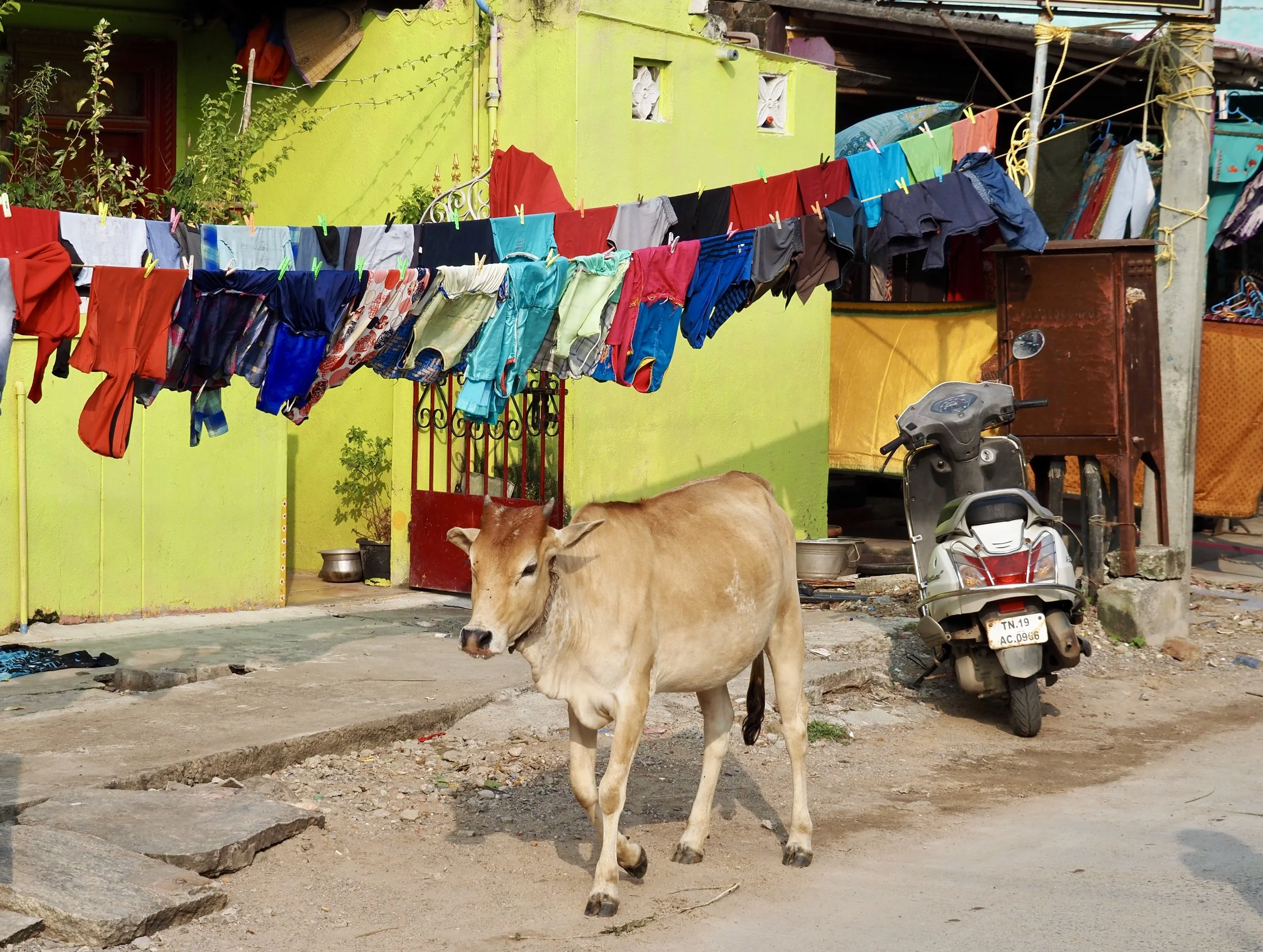 If it isn’t clear already, I love yellow. This street cow walked by at the perfect moment in front of this yellow wall and colorful clothesline and I couldn’t resist snagging a pic.